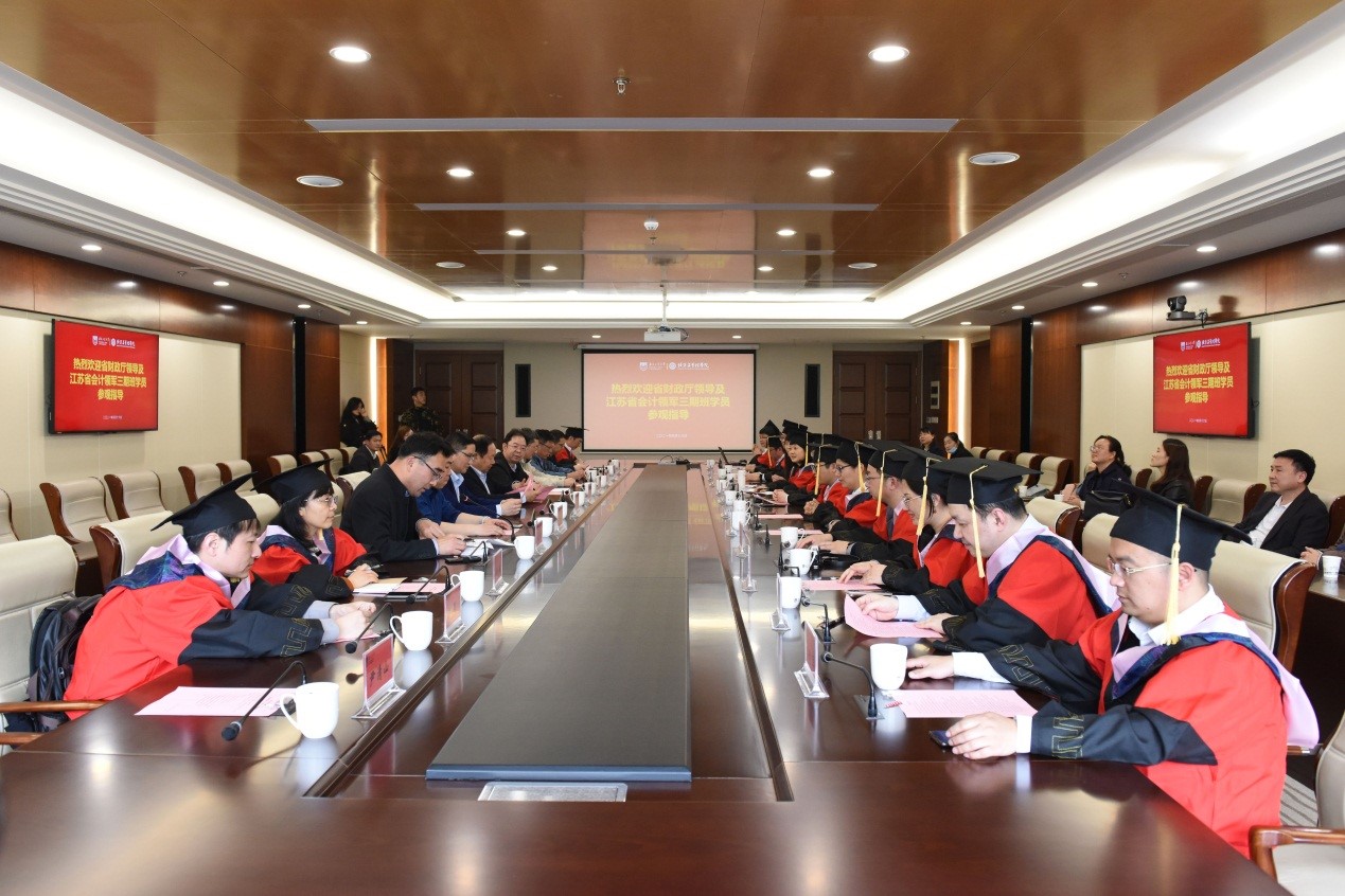 四月的南工,繁花似锦、生机盎然,弘楼的会议室高朋满座、星光闪耀。4月16日下午,MPAcc校外导师聘任暨“江苏省高端会计人才培养基地”揭牌仪式在弘毅楼三楼会议室隆重举行。江苏省财政厅会计处处长黄春育、财政厅会计处调研员姚敏、太阳成集团tyc539副董事长李世收、太阳成集团tyc539资产经营有限公司总经理秦鑫、太阳成集团tyc539经理王冀宁、党委副书记岳克勤、副经理吴斌、会计科学带头人许敏、中国化学工程集团有限公司财务部副部长宋志鹏等23位拟聘校外硕导、太阳成集团tyc539教师代表出席了会议,会议由经管公司党委副书记岳克勤主持。