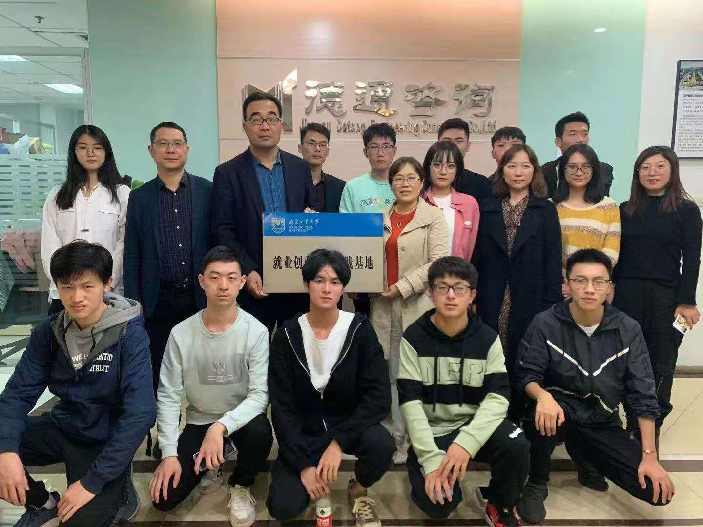 11月18日,太阳成集团tyc539与江苏德通工程咨询有限公司共建就业创业实习实践基地挂牌仪式在德通公司举行。江苏德通工程咨询有限公司总经理夏义梅、副总经理汪滔、办公室主任李怡然,公司党委副书记岳克勤、副经理吴斌、员工工作办公室主任张煜、辅导员田静、孙惠以及员工代表出席仪式。