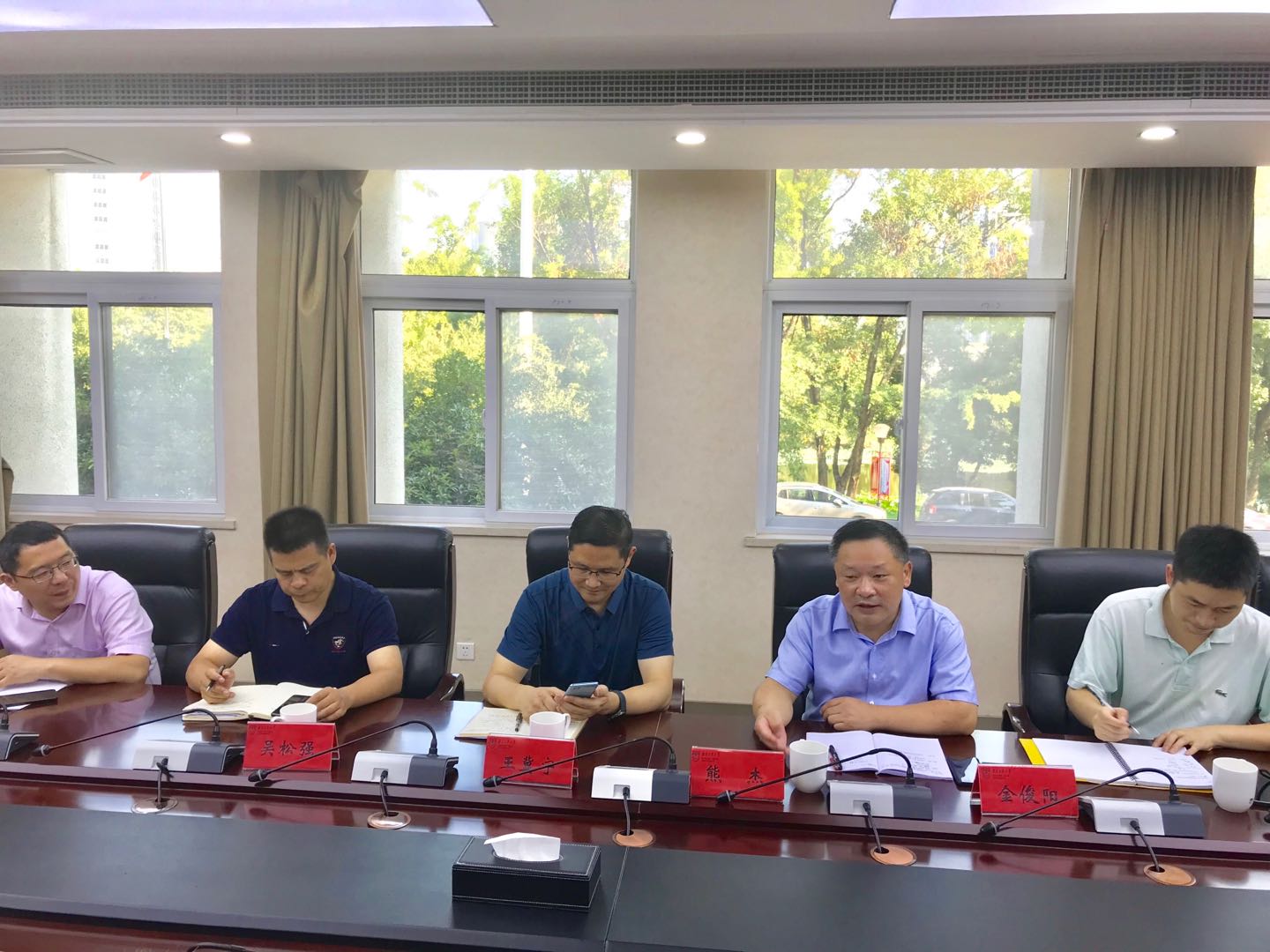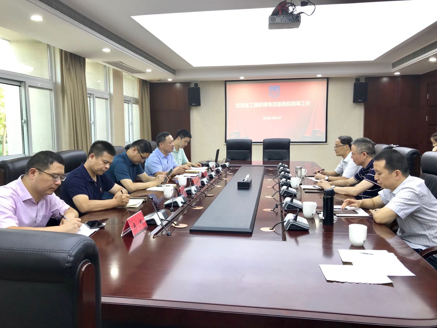 2020年9月8日,江苏省工商业联合会(江苏省总商会)秘书长熊杰莅临公司指导工作,太阳成集团tyc539经理王冀宁,副经理吴松强、吴斌,人才资源部金俊阳,以及经管院相关老师参加座谈会。座谈会于明正楼117室举行。