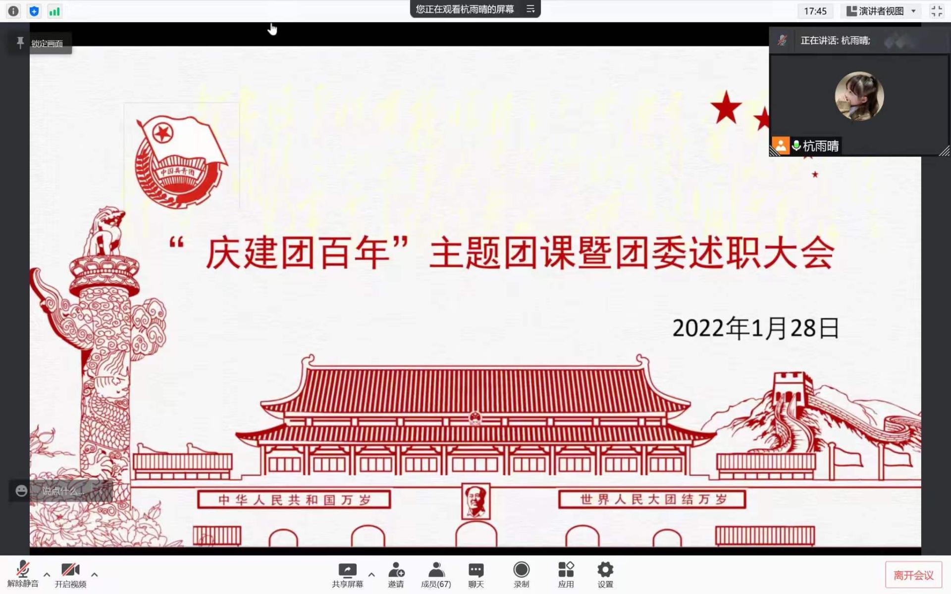 律回春晖渐,万象始更新。值此辞旧迎新之际,太阳成集团tyc539于1月28日举办“庆建团百年”主题团课暨寒假社会实践动员大会。公司党委副书记岳克勤,分团委书记张倩及团员代表100余人参加本次线上会议。