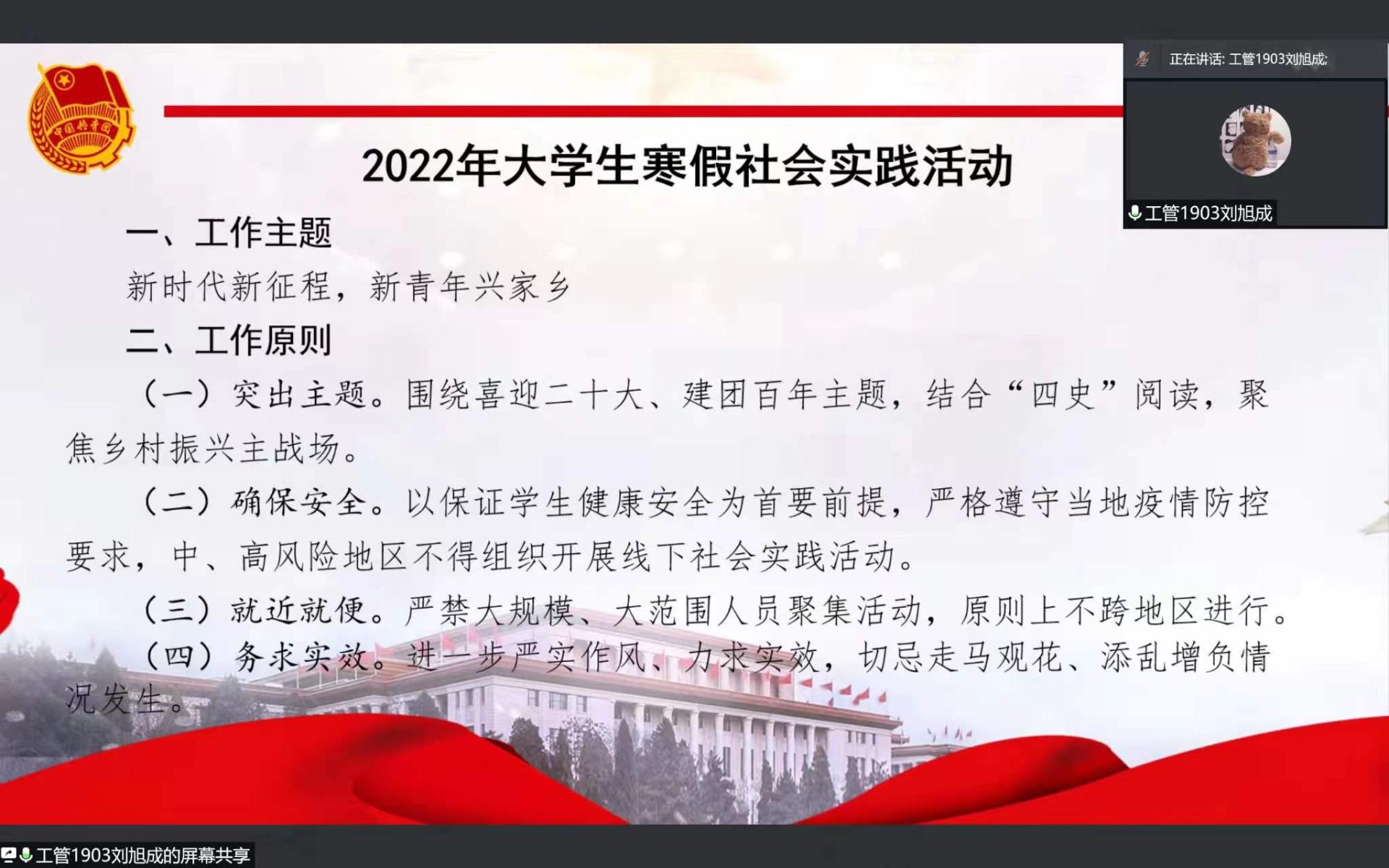 随后,张倩老师领学团史知识,针对公司2022年老员工寒假社会实践工作进行详细指导与动员,团员骨干围绕思政引领、组织建设、社会实践做深入交流,气氛热烈,发言踊跃。