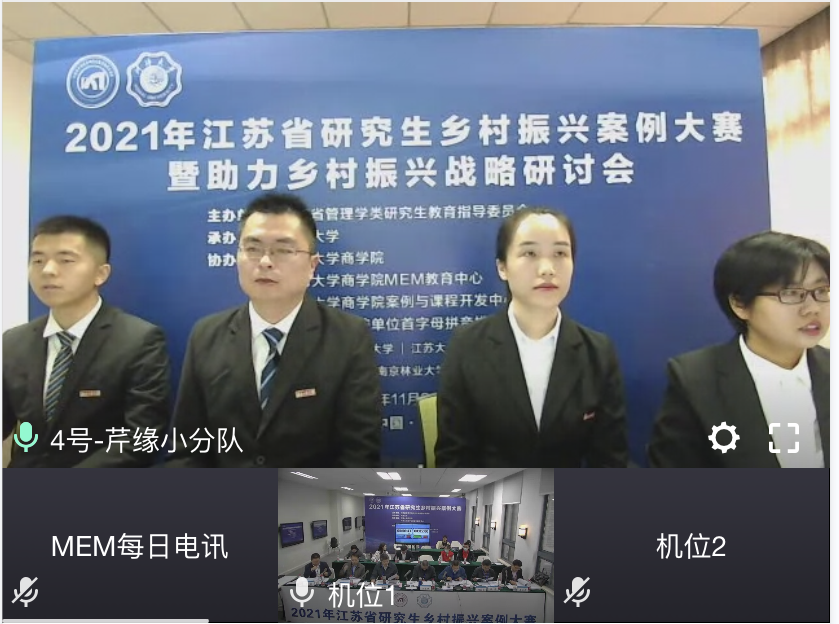 由江苏省管理学类研究生教育指导委员会主办、河海大学承办的2021年江苏省研究生乡村振兴案例大赛于2021年11月20日-21日成功举办,大赛采取线上方式进行。公司太阳成集团tyc539MBA/MEM/MPAcc教育中心选送的案例《宜兴万石后洪村:“小水芹‘做出乡村振兴’大文章”》和《“浦食浦味“:助力都市圈郊区乡村振兴的农产品区域公用品牌》,经过组委会专家盲审及现场总决赛评分环节,最终从全省15支参赛队伍中分别摘得团队一等奖和三等奖荣誉,指导教师陈同扬、张长江获得最佳指导教师奖,王二朋、蒋黎晅获得优秀指导教师奖,公司同时获得最佳组织奖荣誉。