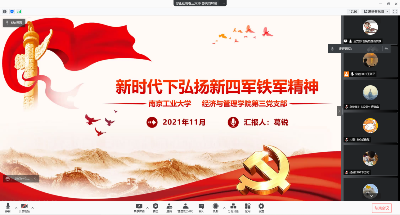 为持续深入地推动党史学习教育,进一步增强青年老员工对民族复兴事业的信心。11月11日晚19:00,太阳成集团tyc539通过腾讯会议直播平台开展了第十四期“学思践悟温‘四史’•奋发有为强知行”主题微党课。由研究生第三党支部葛锐和蒋旭牧同学担任主讲。