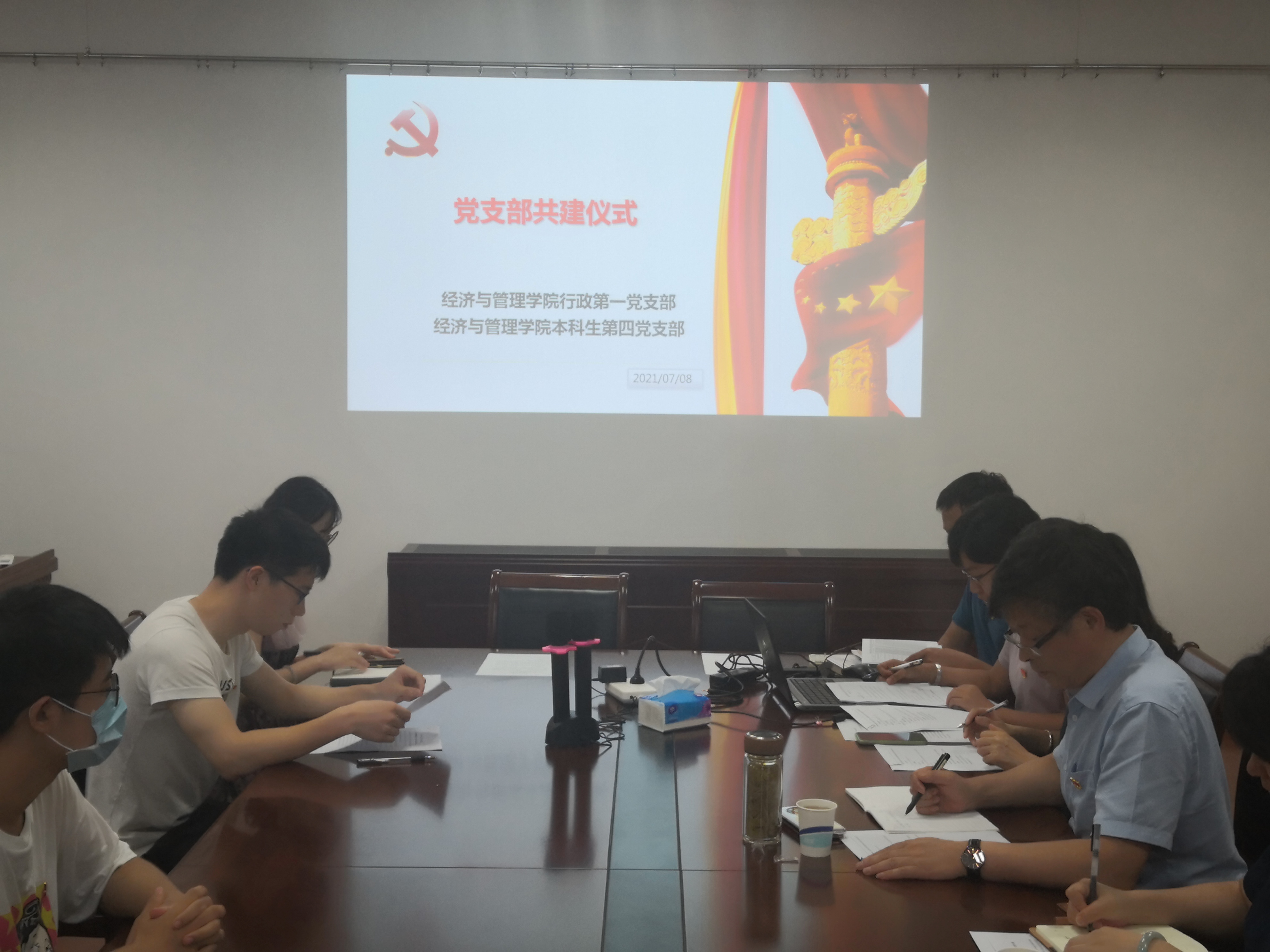 行政第一党支部书记周洁老师首先介绍了行政老师支部党建的基本情况以及党建优势和党建特色,并期盼通过两个支部结对共建以实现优势互补,期待后续和员工支部的紧密沟通、交流共建,共同推进党支部的组织建设。金融学和人力资源管理专业第四党支部书记柏双伟介绍了支部的成员情况,并就半年来员工支部的党史学习教育情况和党员教育管理情况做简要汇报,希望在与行政第一党支部的老师们共建活动交流指导中,提升员工支部的党建活动水平。