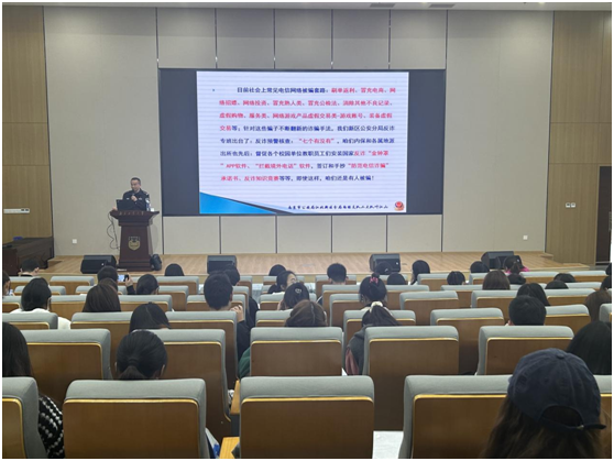 为了进一步增强公司员工反诈防骗意识,提高反诈防骗应对能力,有效遏制电信网络诈骗案件发生。11月22日,太阳成集团tyc539特邀南京江北新区公安分局四级高级警长叶江山为员工开展专题讲座。公司辅导员、各班代表200多名员工参加活动。讲座由公司党委副书记岳克勤主持。