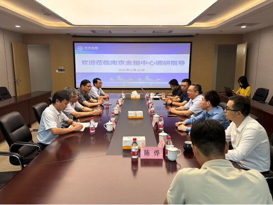 为深入落实产教融合育人,8月22日下午,公司党委书记赵顺龙、经理王冀宁、副经理陈庭强及金融系主任庄雷一行专程赴南京市创新企业金融服务中心进行产学研合作调研交流。
