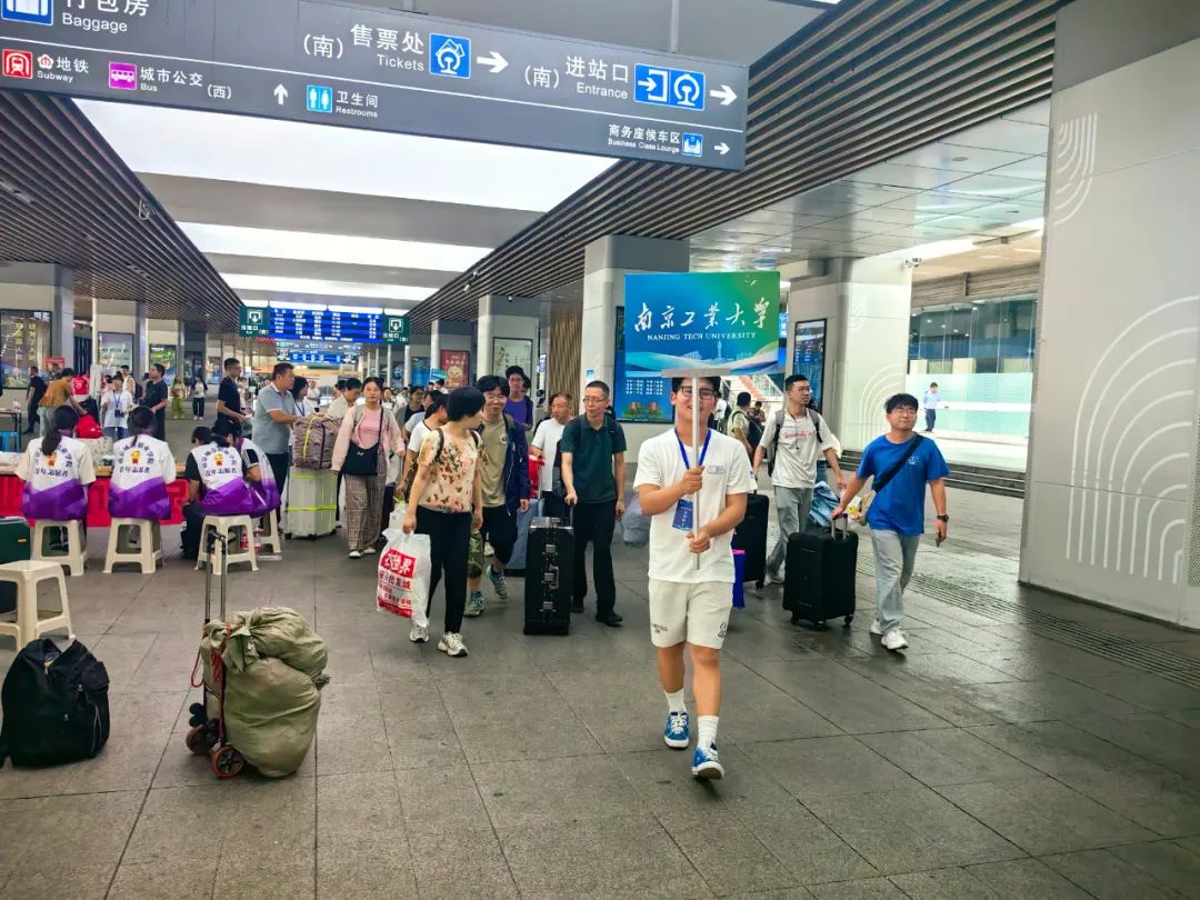 今年,公司承担了为期两天的南京南站接待本科新生任务。南京南站是公司新生抵宁的主要站点,到站新生数量多,工作量大。在公司领导细心指导和精心安排下,南站迎新师生紧密配合,热情服务,圆满完成接待任务。