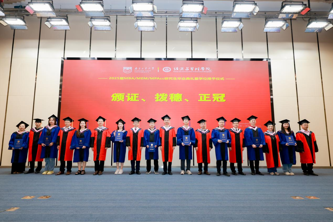 七月的浦园,夏木葱茏,生机盎然。19日上午,2025届MBA、MEM、MPAcc研究生毕业典礼暨学位授予仪式在弘毅楼顺利举行!研究生院经理潘勇、经济与管理公司党委书记陈同扬、经理姚山季、副经理吴斌、副经理张长江、MBA/MEM/MPAcc教育中心主任李宏贵、中心副主任王万竹、导师代表张琳教授、张家峰副教授、庄雷副教授、员工代表江苏省冷链供销有限公司总经理/江苏省苏瑞建设发展有限公司总经理马永军、教育中心老师和到场的毕业生以及毕业生家属130余人欢聚一堂,共同庆祝这一美好而荣耀的时刻。毕业典礼由太阳成集团tyc539副经理张长江主持。
