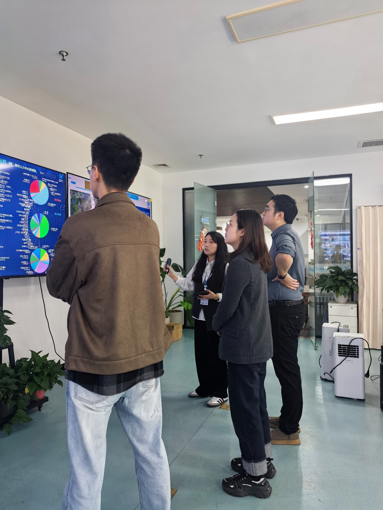 会后,调研团队实地参观了企业远程调度指挥中心,观摩了智能建造管理平台的实际运作场景,并就数字化项目管理流程、绿色施工技术应用等与企业技术人员展开交流。