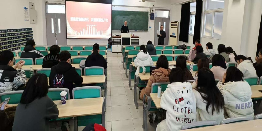 司方来博士从我国数字经济发展背景和战略设计、数字经济内涵及主要特征、新质生产力发展以及数智时代人才培养四个方面讲述了数字经济时代的机遇与挑战,鼓励同学们积极参与数字经济竞赛和科教融汇实践,不断提升自身数字素养,努力成为适应新时代发展的复合型人才。