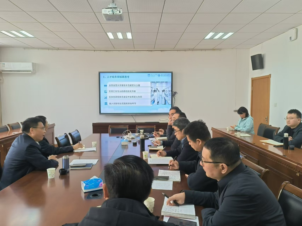 陈同扬书记简要汇报了公司党委全面从严治党、廉政建设与一岗双责履行工作情况,姚山季经理汇报了公司基本情况与团队建设规划。曹杰书记充分了解公司在党建、团队建设、团队团队、科研成果、课程教材、学科竞赛等方面所取得的成绩,并就经管公司未来团队建设和博士点申报工作提出了具体的指导意见,希望公司能够坚持以团队建设为龙头,不断积累各项教学科研成果,主动加强与相关工科公司交流合作,全力推进经管学科新发展。