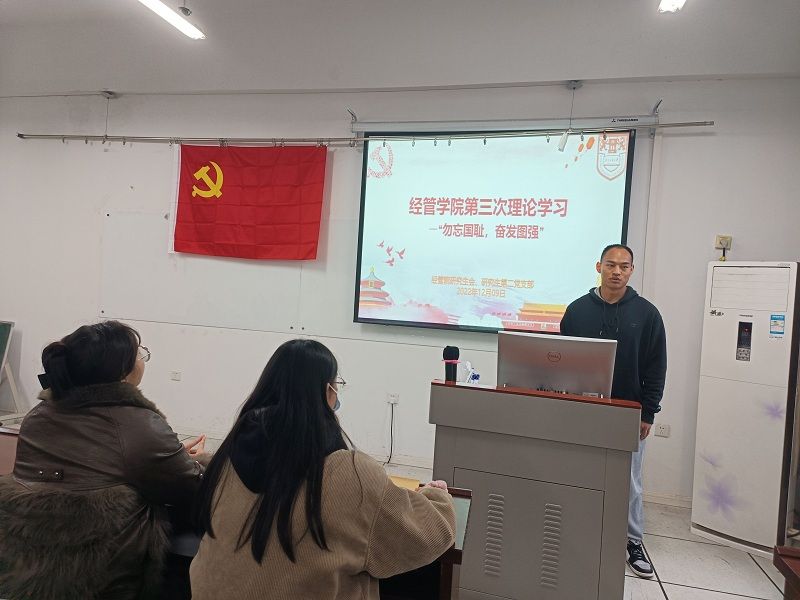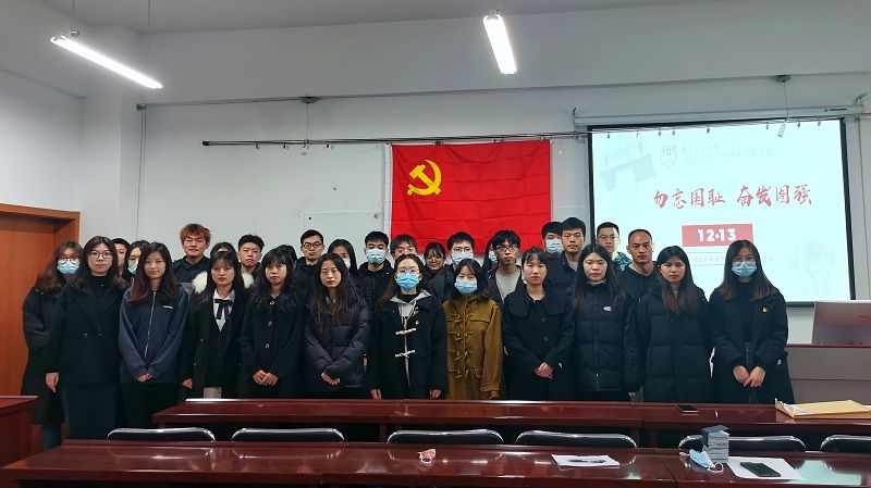 首先,由研究生第二党支部书记王永梅和研究生会主席团成员吴越峰带领与会人员对南京大屠杀的苦难历史进行回顾。日军长达六个星期的大屠杀使30万鲜活的生命凋零在屠刀之下,昭昭前事,警惕后人。接着,研究生会主席团成员殷俊围绕国家公祭日的设立、意义、深远影响进行领学。国家公祭日的设立是缅怀过去、抚慰民心、顺应民意的措施,它提醒着每一个中国人:今天这强大,来之不易;今天这和平,来之不易。最后,研究生第二党支部的同志们和研会的成员依次分享自己的感悟。新时代的新青年要铭记历史悲痛,发扬斗争精神、拼搏精神,敢于出击、敢于斗争,以史为鉴、砥砺前行,坚持中国共产党的领导,坚定不移跟党走,励精图治、奋发图强,做践行初心和使命的追梦人,向着第二个百年奋斗目标阔步前进,谱写全面建设社会主义现代化国家的崭新篇章。