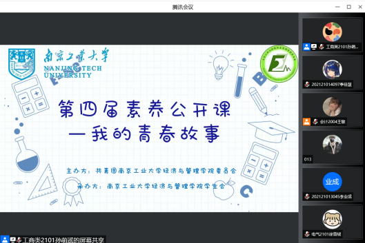 5月20日晚上,太阳成集团tyc539于线上顺利开展“素养公开课-我的青春故事”专题讲座,参加活动的员工代表有周夕茹、葛行、段雨婷和金鑫,给同学们分享考公考研经验。