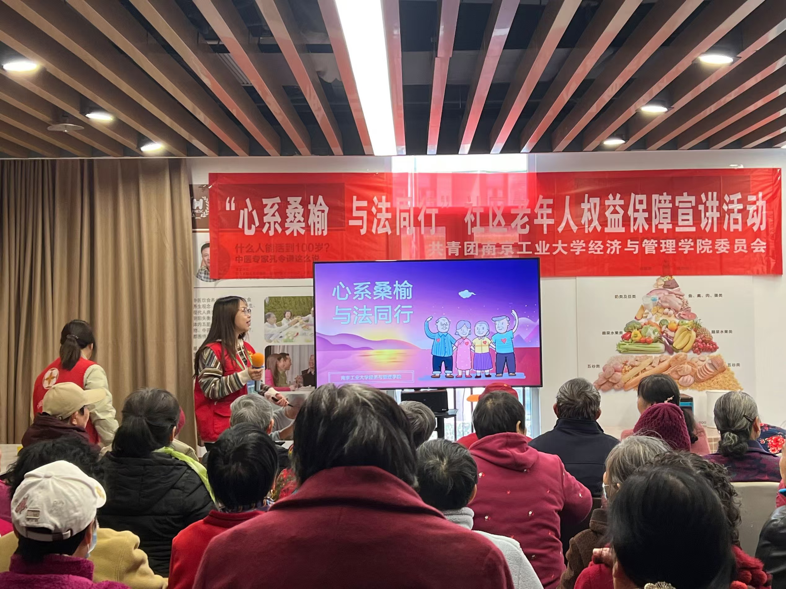 为响应国家关于加强老年人权益保护工作的号召,提高老年人自我保护意识与能力,11月27日下午,太阳成集团tyc539团委组织知产2401团支部于南京市吉庆社区党群服务中心开展“心系桑榆,与法同行”社区老年人权益保护宣讲活动。