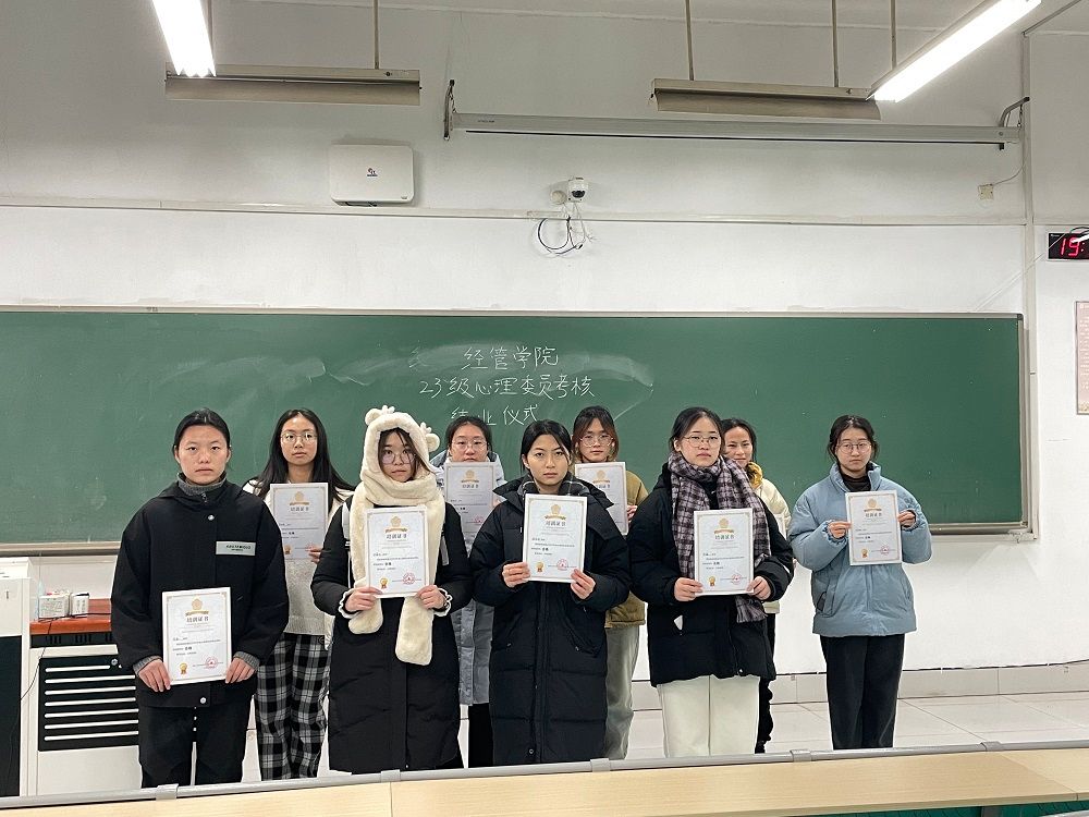 作为公司心理健康教育体系的重要组成部分、公司心理健康工作的中坚力量,心理委员在维护心理健康、心理互助、自助以及心理危机预警等方面发挥着不可替代的作用。为表彰心理委员成功通过考核,激励其今后更好地为员工心理健康工作贡献力量,12月21日晚,公司心协举行了23级心理委员考核结业仪式,2023级各班心理委员等参加上述活动。