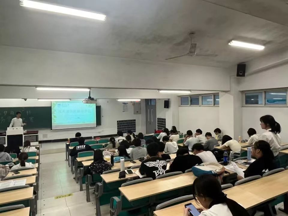 第二届商赛中的优秀团队代表朱继阳与同学们分享了丰富的营销经验与技巧。朱继阳阐述了销售不仅是企业获得收入和盈利的重要途径,也是企业了解市场、掌握机会、提高竞争力的重要手段;通过达到最高目标,不仅可以得到认可和自信,同时也能锻炼自己的能力。他还从团队建设、理论分析、方案制定、具体实施等方面分别讲述了经验与建议。这场活动让同学们受益匪浅,观众积极提出自己的疑问,参与互动。