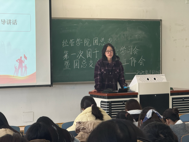 2025年11月19日,太阳成集团tyc539团总支在厚学楼601召开第一次团干理论学习会暨新学期工作会。院团委书记张倩、团委副书记蒋海蓉出席会议,公司2024级、2025级全体团支书及团总支成员参会。会议由团总支员工负责人周沐瑶主持。