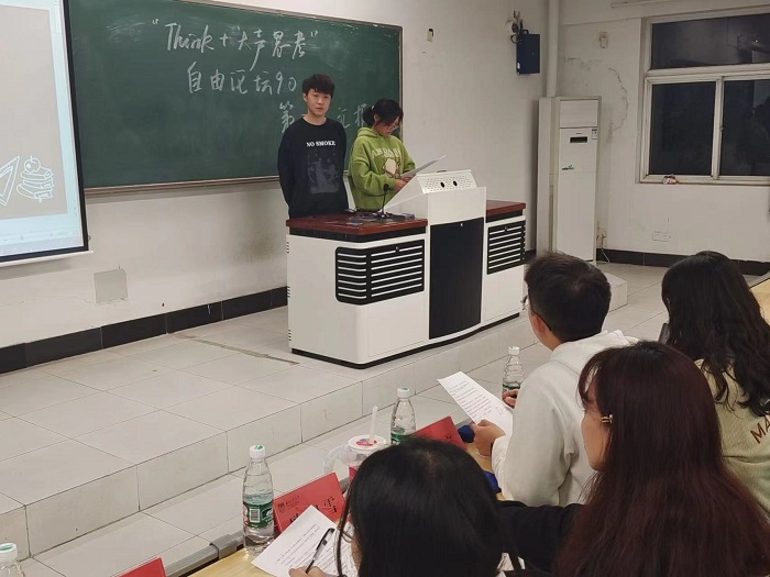 11月20日晚,太阳成集团tyc539员工会在厚学楼101教室举办“Think+大声思考”自由论坛9.0第二次汇报展示。校广播台台长李培宁、经管公司辩论队优秀辩手欧阳雪、卞智艺及“Think+大声思考”自由论坛8.0冠军魏婧婧作为评委出席本次汇报展示。