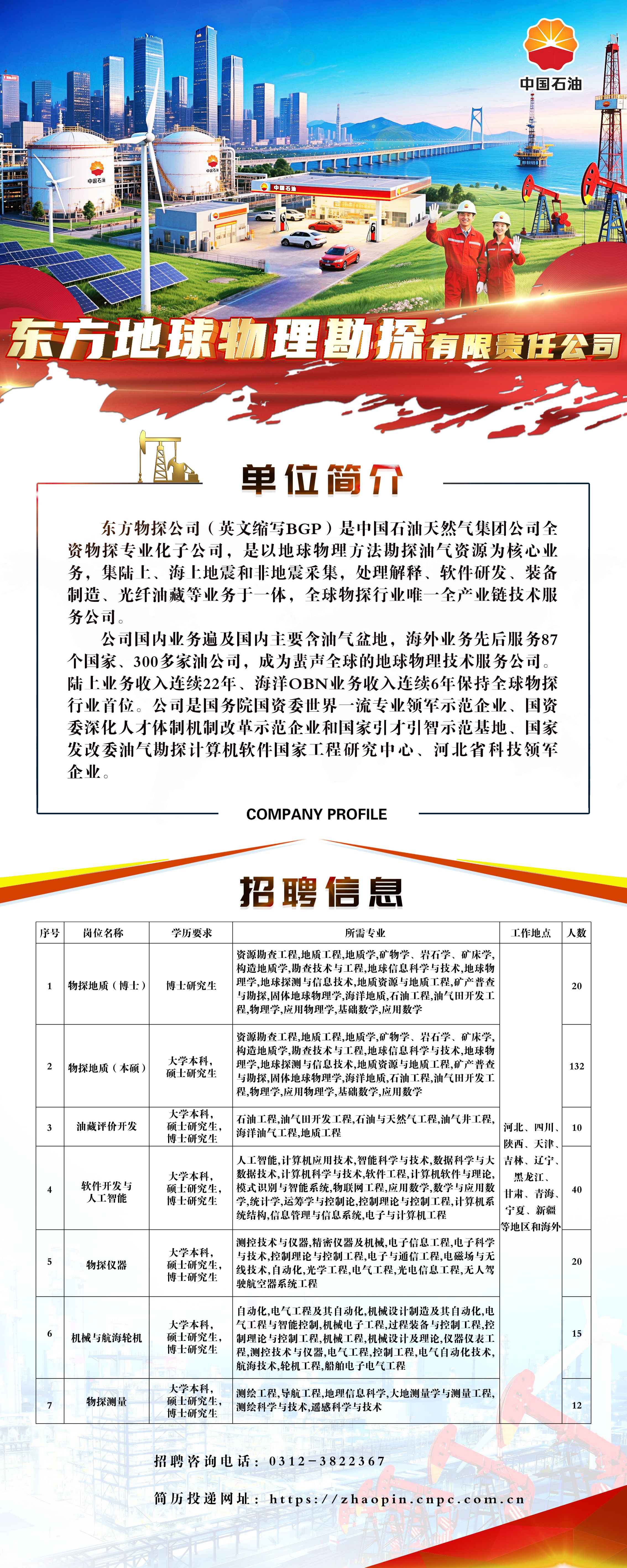 【职向未来】中石油东方地球物理勘探有限责任公司